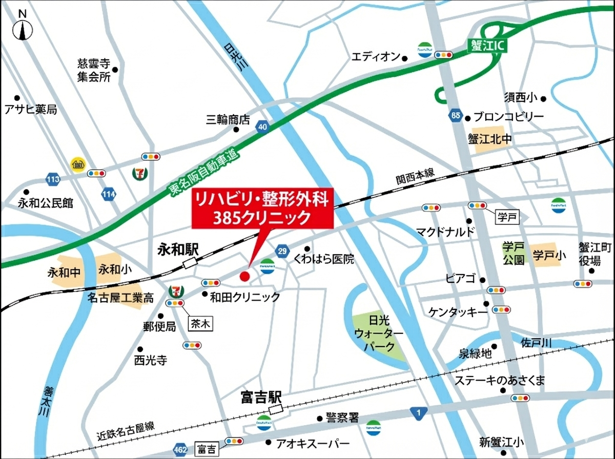 蟹江 IC から西へ車で15 分 駐車場多数完備